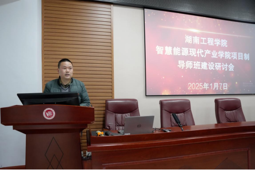1月7日下午,我校智慧能源现代产业学院项目制导师班开班仪式在电气楼408举行。校党委委员、副校长吴志军,中南智能长沙长泰机器人副总经理朱栗波、中南智能装备有限公司首席科学家段小刚、湘电集团党委组织部(人力资源部)副部长玉金铧、威胜能源技术股份有限公司总监助理李学明、湖南兴蓝风电有限公司主管谭诤,我校教务处、国产欧美一区二区和相关负责人等参加开班式。仪式由国产欧美一区二区副院长吴迪主持。