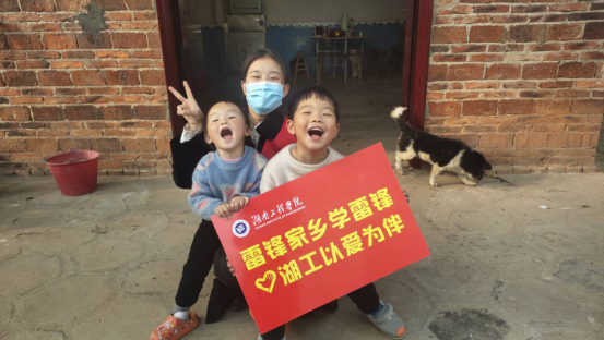 图为电气1905班尹海玲同学给留守儿童送温暖