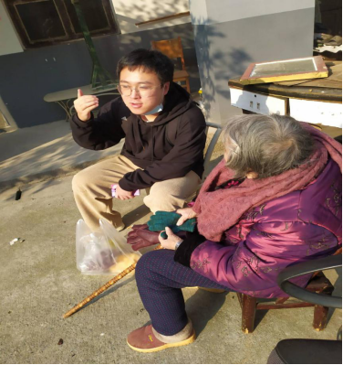 图为电气2005班李泽宇同学看望宋奶奶并陪奶奶聊天