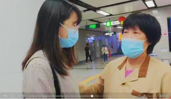 还有一些同学做好个人防护,走上街头,为疫情期间依然坚守在自己岗位上的城市守护者送去关怀。