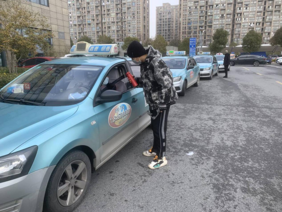 图为电气1901班孔易成同学前往车站为司机师傅送去姜茶