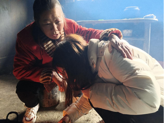 图为自动化2001班杨思同学为奶奶烧火