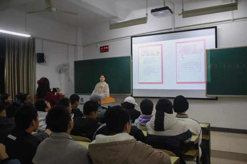 为深入学习宣传贯彻党的二十大精神,12月4日晚上,国产欧美一区二区2022级同学在主教学楼C402开展“学习二十大,永远跟党走,奋进新征程”主题团课学习,团课由学院团总支书记屈佩斯主讲。