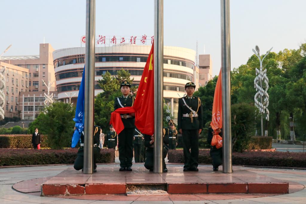 “相聚湘江之滨,踏着伟人足迹……”校歌中的每一句歌词都蕴含着对未来的期许,激励着湖工学子不断前行、勇攀高峰。在同学们悠扬的歌声里,升旗仪式圆满结束。