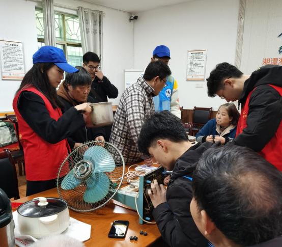 学院将志愿者分成三支队伍,第一支队伍的志愿者来到大桥社区,为社区居民义务维修家电。居民们在得知消息后,陆陆续续将家中受损电器搬来,大到电饭煲、洗衣机、电风扇,小到热水壶、遥控器、手电筒。志愿者们热情地接待每一位到来的居民,创新基地的技术人员对受损的电器进行详细记录,他们将居民们送来的电器进行拆卸,认真地寻找故障所在,精确地检验每一个问题,竭尽所能地修好每一件电器。仅半天时间就收到受损电器20件,成功修复了17件,部分电器因电机损坏、集成电路板受损未能修复。李爷爷的一句“谢谢你们修好了我的电风扇”以及洋溢在脸上的笑容,让志愿者们觉得一切都是值得的。