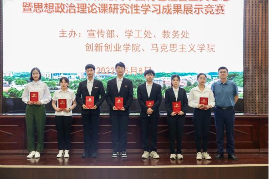 为深入学习和贯彻习近平新时代中国特色社会主义思想,推进思想政治理论课建设改革创新,激发大学生的理论学习积极性,迎接党的二十大胜利召开,5月8日下午,我校在一报告厅举办学习贯彻习近平新时代中国特色社会主义思想暨第八届大学生思想政治理论课研究性学习成果展示竞赛决赛。