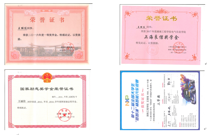 获得湖南工程学院一等奖学金