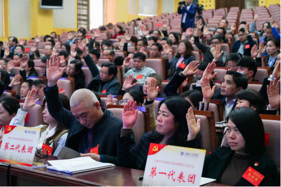 陈岳堂作总结讲话。他表示,在上级党委的指导关心下,在各位代表的共同努力下,中国共产党湖南工程学院第四次代表大会圆满完成了会议的各项议程。此次会议审议通过了校党委和校纪委的工作报告,顺利选举产生了新一届的党委和纪委。他希望全校各级党组织要组织广大党员干部和师生员工深入学习、宣传、贯彻大会精神,把师生员工的思想和行动统一到大会的决策部署上来,把智慧和力量凝聚到大会确定的目标任务上来。我们面对新任务新要求,一定要全面落实新时代党的建设总要求,坚持和加强党的全面领导,不断提升学校各级党组织的领导能力和工作水平,围绕学校的发展目标,在各自的工作岗位上履职尽责、建功立业,将涓滴细流汇聚成一往无前的磅礴伟力,在攻坚克难中奋力突破,在披荆斩棘中坚定前行,在新征程上创造更加灿烂的辉煌。