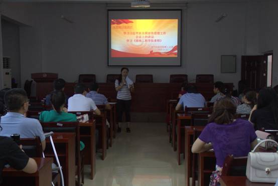 9月11日下午,电气信息学院教工党支部在电气楼408会议室组织开展了专题学习,集中学习了习近平在全国宣传思想工作会议上的讲话以及《湖南工程学院章程》。党总支书记岑蓉、支部书记胡慧及全体教工党员参加了学习。