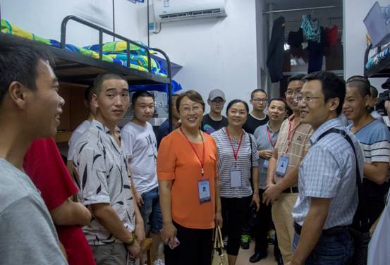 9月16日晚上,电气信息学院领导班子来到滨江学生公寓,集体下寝慰问新生,将学院的关怀送入新生寝室。