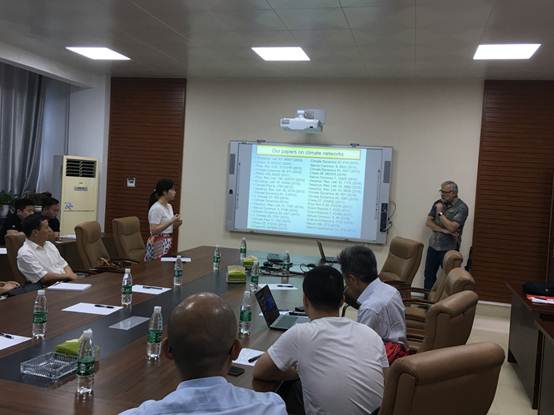在研讨会上,德国洪堡大学、欧洲科学院院士Jürgen Kurths教授首先做了题为“Predictability of Extreme Climate Events via a Complex Network Approach”的学术报告。Jürgen Kurths教授与大家分享了将复杂网络方法对气候动力学进行分析的成果。通过时空动力系统产生的数据,重构并分析复杂系统,从而揭示海洋和大气与全球环流的关系,通过将复杂网络方法应用于高分辨率卫星数据,并引入一种多重比较偏差技术,揭示极端降雨的全球关联模式。华中科技大学关治洪教授作了题为“混杂智能网络的控制问题”的学术报告,关教授以其渊博的学识、独到的见识以及丰富的实践经验,用通俗易懂的语言、生动有趣的事例,从静态和动态两个角度切入混合智能网络,介绍了人工智能与混合智能网络的重要性与发展前景,并结合自己的科研团队和实验室研究,以案例形式讲解了机器人系统与混合智能网络,多智能体协调控制等问题。下午由上海交通大学杰出青年基金项目获得者张文明教授主持了小范围讨论会,就复杂网络控制以及多智能体控制理论及应用进行了热烈的讨论,探讨了该领域的最新研究动态和未来发展的方向。
