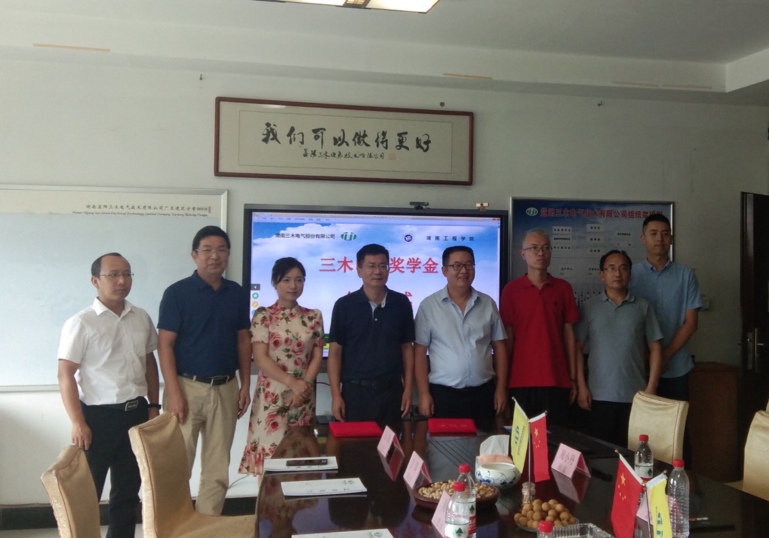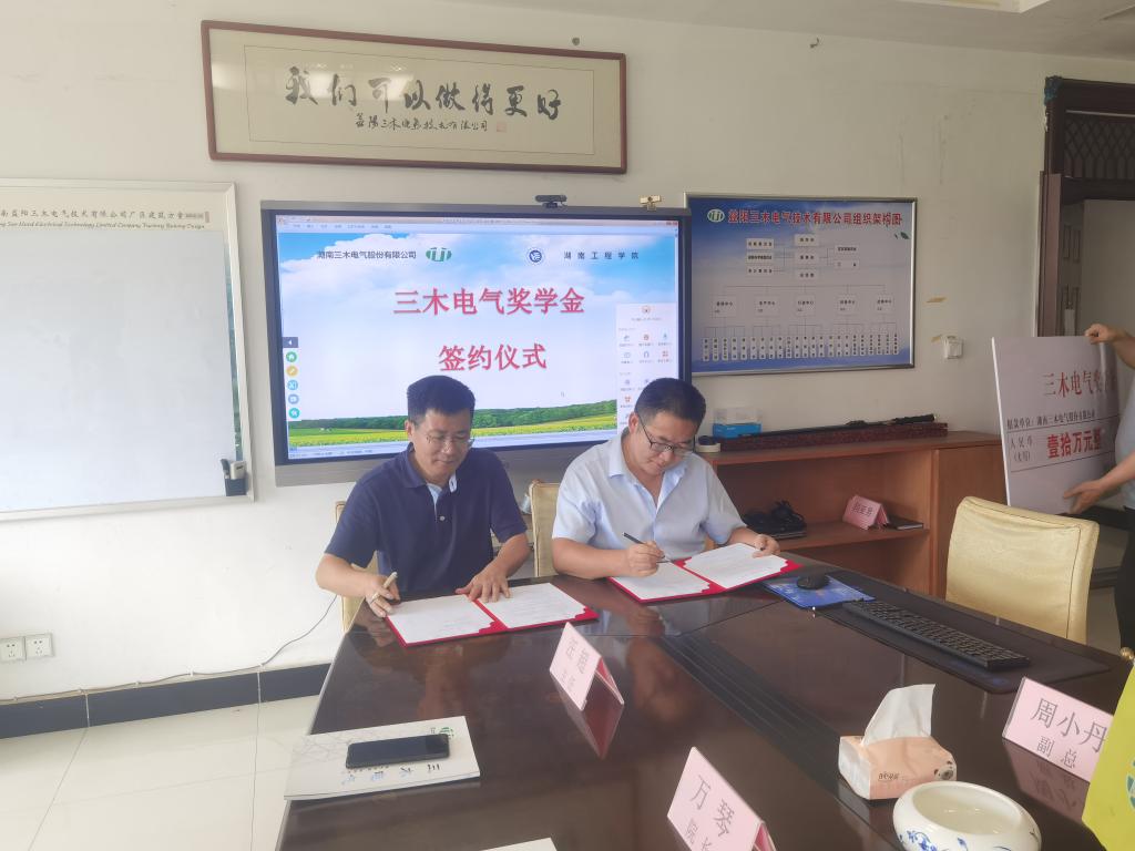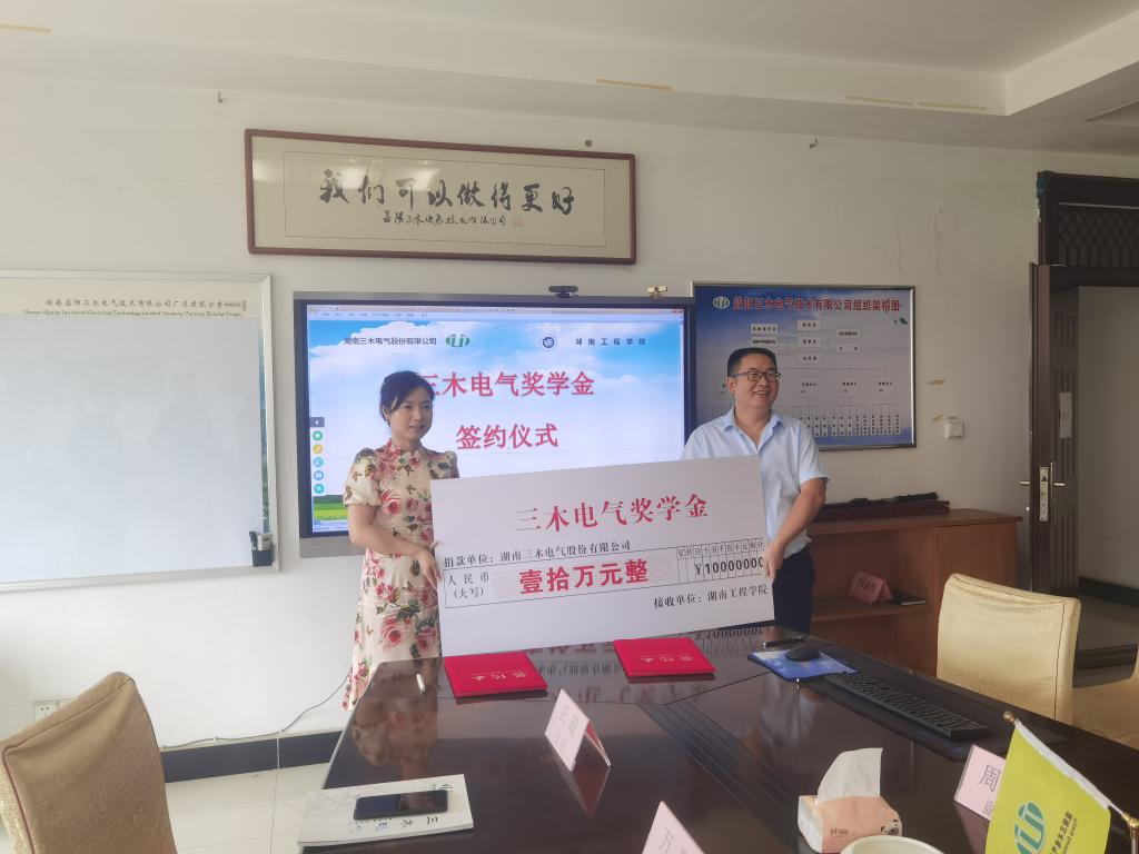 为激励学生勤奋学习、刻苦钻研、献身科技事业,湖南三木电气股份有限公司向湖南工程学院捐赠10万元,设立“三木电气奖学金”,定向用于奖励国产欧美一区二区各专业品学兼优学生。9月11日上午,捐赠签约仪式在湖南三木电气股份有限公司举行,校长易兵,国产欧美一区二区领导班子一行参加捐赠仪式。
