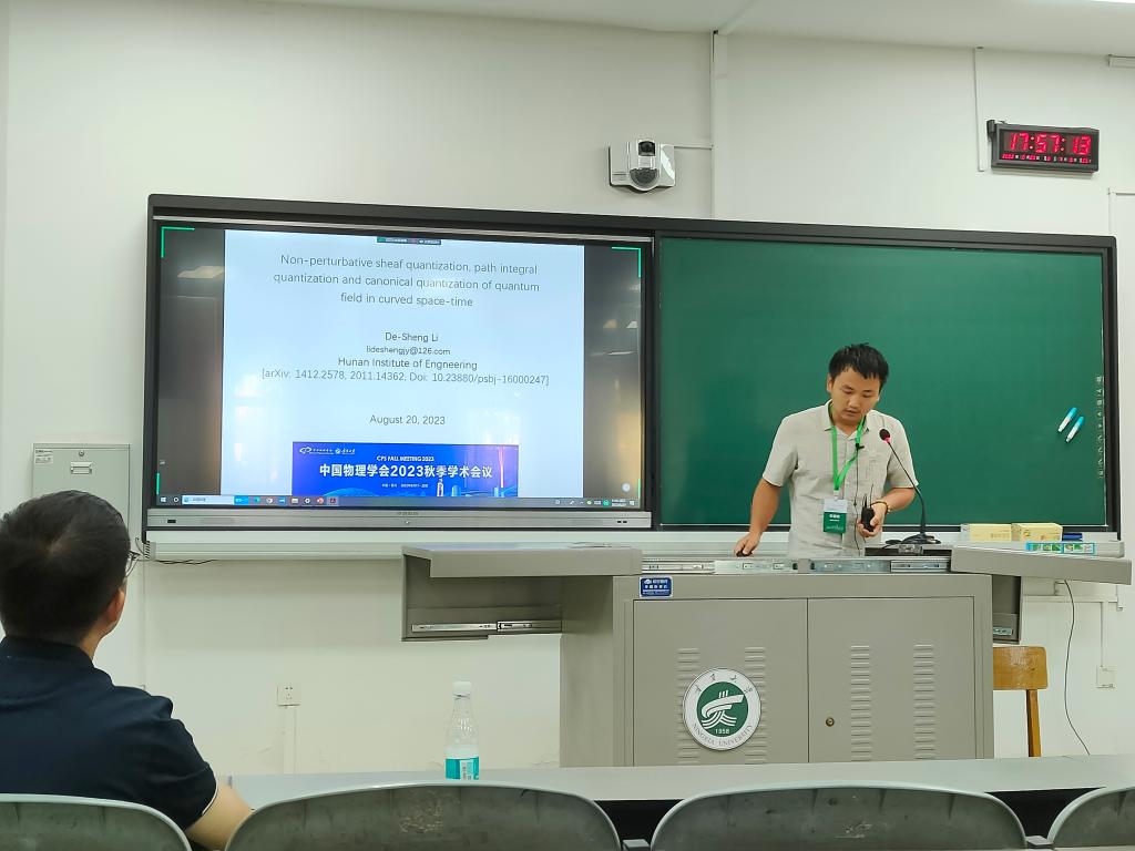 8月17日至20日,由中国物理学会主办、宁夏大学承办的中国物理学会2023秋季学术会议在宁夏大学举行。我校国产欧美一区二区李德胜博士应邀参会并作题为《弯曲时空量子场论的非微扰层量子化、路径积分量子化与正则量子化》的学术报告。