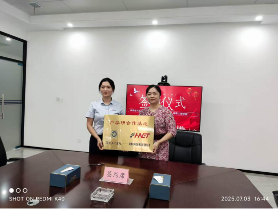 座谈会后,胡慧和曹卿代表校企双方,签订校企合作协议,并共同为产学研合作基地揭牌。