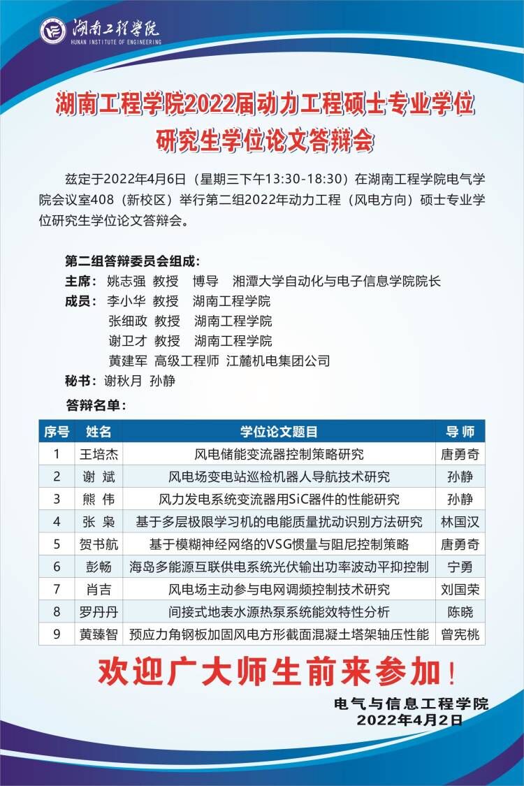 湖南工程学院2022届动力工程硕士专业学位研究生学位论文答辩会