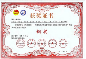 1.作品《宠能科技—智能化喂养及监护装置》获第十届挑战杯湖南省大学生创业计划竞赛铜奖
