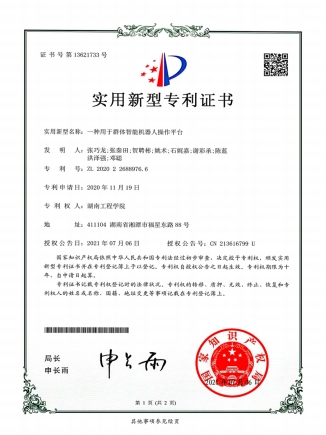 2021年7月  被授予实用新型专利证书:一种用于群体智能机器人操作平台