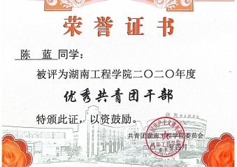 2021年4月   被共青团湖南工程学院委员会评为2020年度“优秀共青团干部”