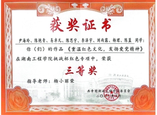 2021年3月  被共青团湖南工程学院委员会评为挑战杯红色专项三等奖