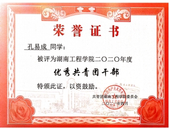 此外还担任学生会干部,在2020-2021学年担任国产欧美一区二区科技部部长一职,在任期间积极组织义务维修活动,参与“五校联合”义务维修,走进校园和养老院,为老师,同学和老人提供相关服务,在此期间获得优秀共青团干部称号。