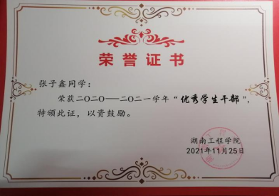 她带头树立先锋模范,争当优秀团员,曾获优秀共青团干部、团干部培训优秀学员、美誉之星。带领班级团支部成员及青年,不断加强团的基层组织建设,推进班级团内各项事务有序快速发展,将班级团支部建设成有凝聚力、积极向上、充满活力的团支部。在团中央基层建设部指导的、中国青年报主办的2020-2021学年高校活力团支部遴选活动中,经过层层推选,最终被确定为“2020-2021学年高校活力团支部”,班级团支部建设典型经验被中国青年报等官方主流媒体报道宣传。