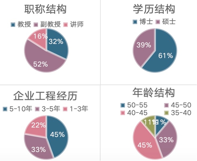 本专业目前有专任教师25人,其中高级职称教师占比84%;有博士学位教师占比61%。自企业、具有丰富实践经验的工程师,在企业工作3年以上的教师占比78%。此外聘请60余名企业指导教师。目前在校生289人,每届招生约75人左右。